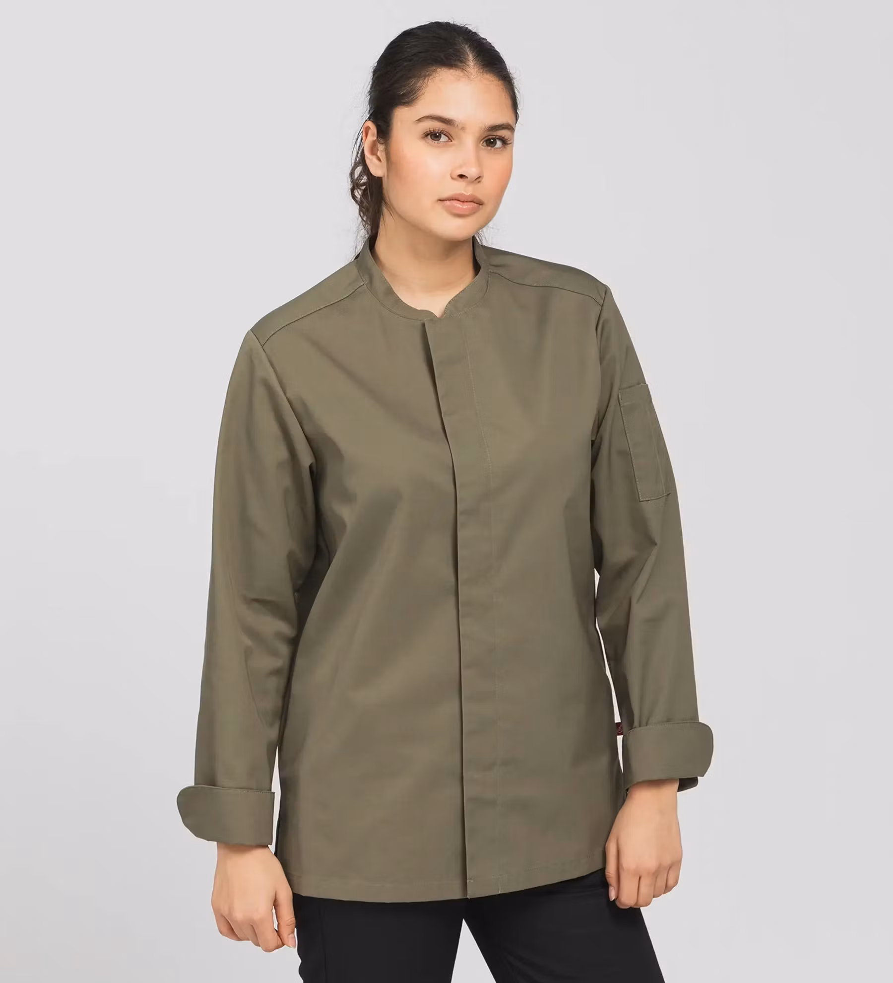 Kockrock från Segers i unisexmodell med lång ärm och funktionell passform anpassad för professionella köksmiljöer. Modellen har slitsar i sidsömmarna, pennficka på ärmen samt hank i nacken för förkläde.
