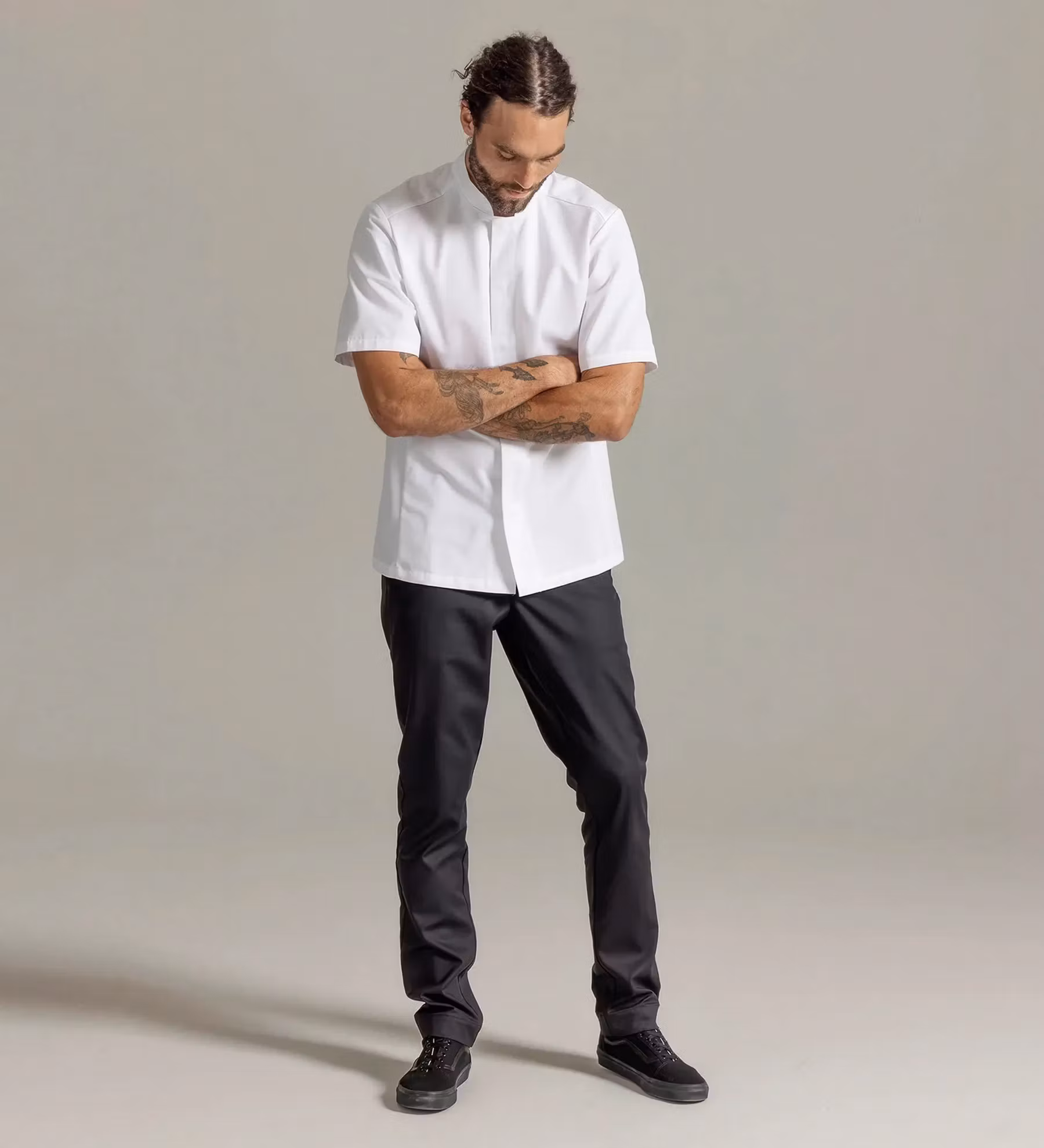 Modern kockrock med kort ärm i något smalare passform för herr. Modellen har dold knäppning med tryckknappar och är tillverkad i slitstark och färghärdig kvalitet.